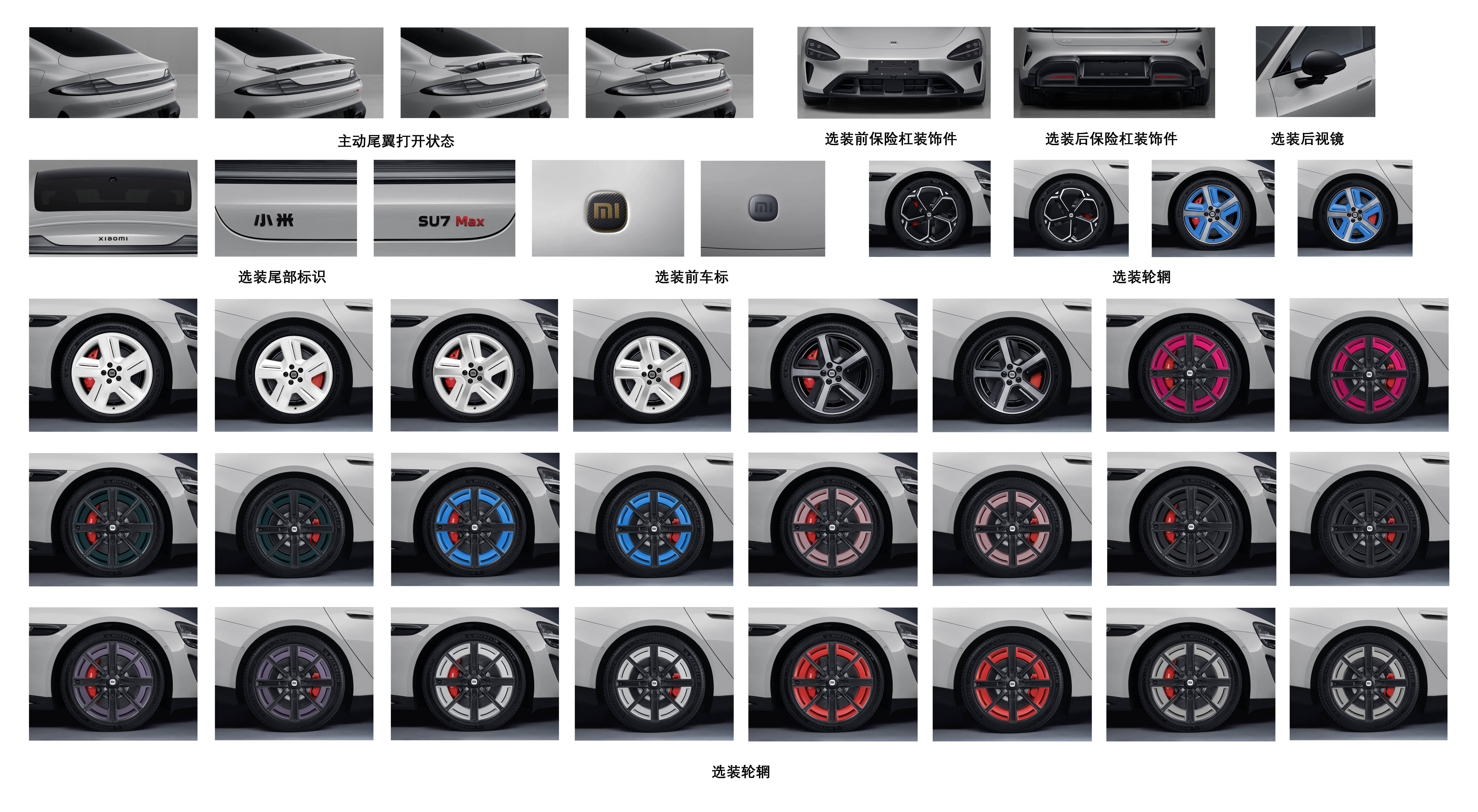 在外觀設計層面,新一代小米SU7延續了現款車型的經典元素,標志性的"水滴大燈"具備400米超遠照射距離。車身側面采用溜背式動感造型,通過立體化線條設計強化視覺層次感。新車標配20英寸全新造型輪轂與紅色剎車卡鉗,輪胎規格采用前窄后寬的差異化配置(前245mm/后265mm),搭配前四活塞固定卡鉗提升制動性能。
