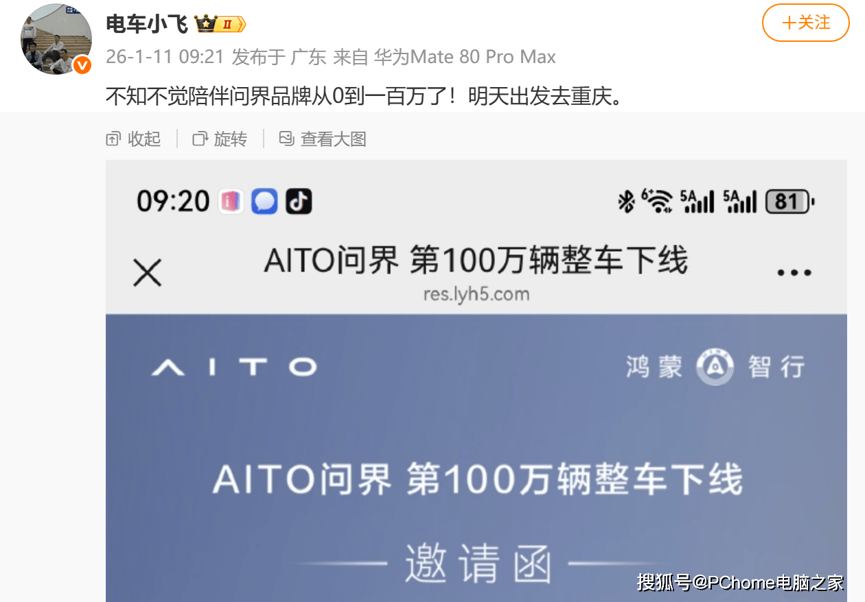 鴻蒙智行旗下高端智慧汽車品牌AITO問界即將迎來重要時刻——第100萬輛整車下線儀式將于1月13日在重慶賽力斯超級工廠舉行。這一里程碑事件標志著問界在新能源汽車領域實現了跨越式發展,成為行業關注的焦點。