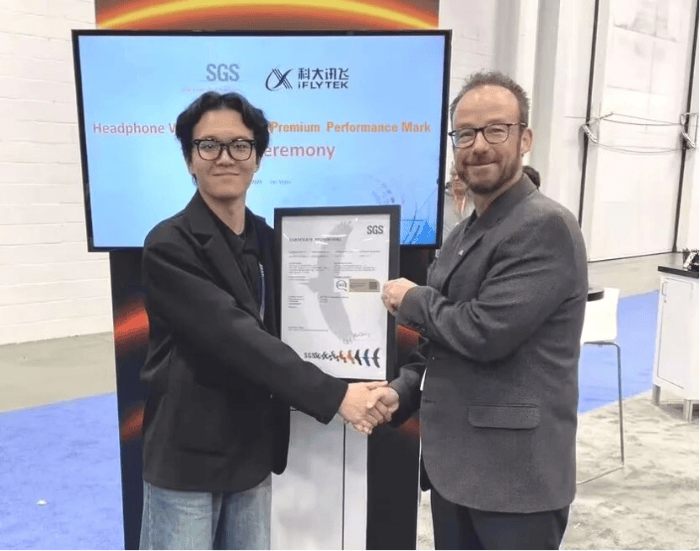 在拉斯維加斯舉辦的國際消費電子展(CES)期間,國際權威測試、檢驗與認證機構SGS攜手科大訊飛等企業共同發布了《智能穿戴產品佩戴舒適度評估白皮書》。這一成果標志著智能穿戴行業在舒適性評估領域邁出了關鍵一步,為產品優化提供了科學依據??拼笥嶏wAI翻譯耳機憑借在佩戴舒適性上的突出表現,榮獲SGS頒發的“耳機佩戴舒適性 Premium Performance Mark”認證,成為行業標桿。