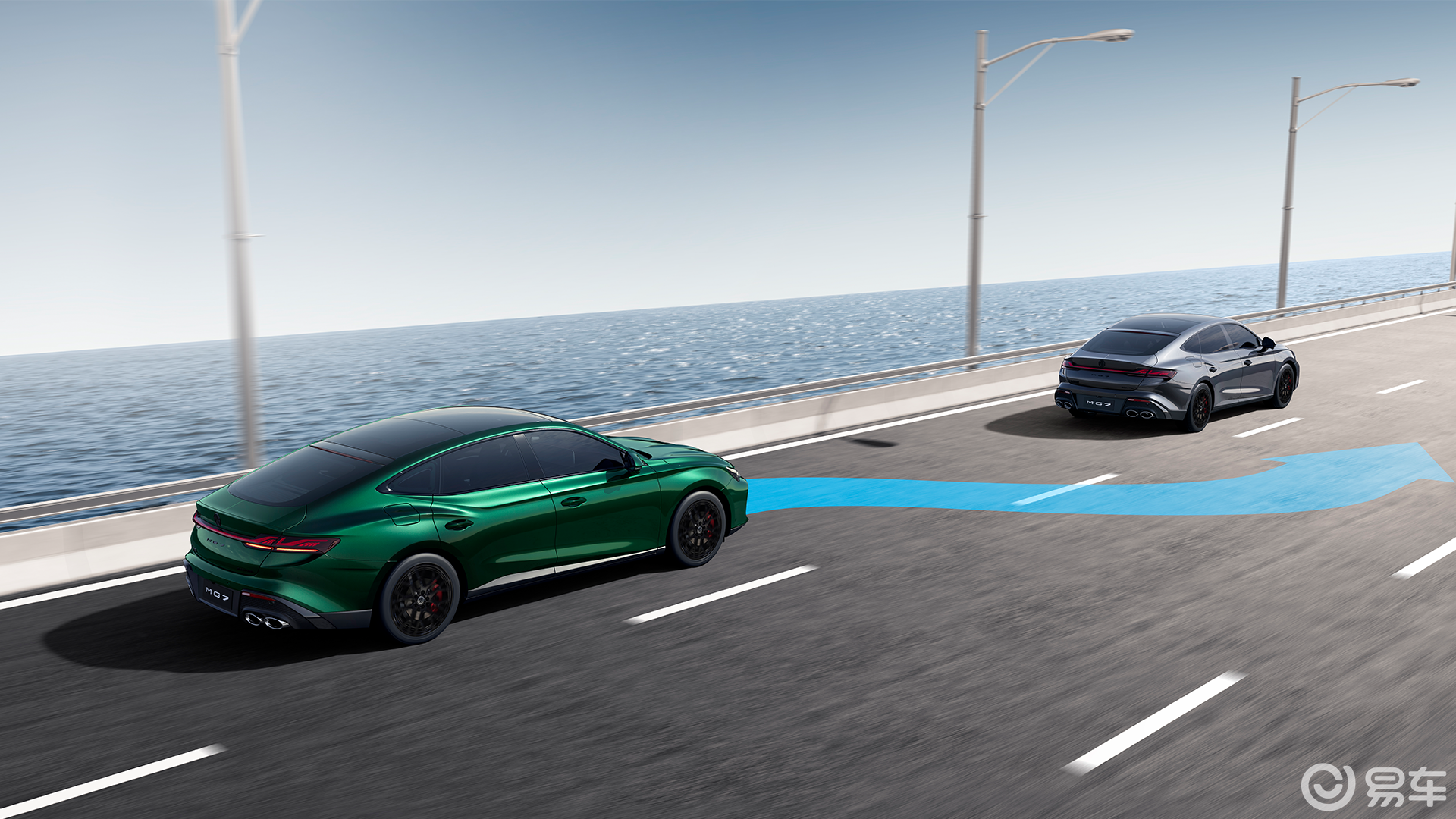 外觀造型延續運動基因,通過細節優化強化視覺沖擊力。前臉采用扁平化設計語言,熏黑格柵與狹長LED燈組形成犀利組合,中央黑化LOGO進一步凸顯性能氣質。車身側面保留標志性Fastback溜背線條,配合無框車門與19英寸多輻輪轂,營造出蓄勢待發的動態美感。車尾貫穿式燈組內部采用精密結構,搭配可升降三段式電動尾翼,在同級車型中形成差異化優勢。新增的冰島藍車漆靈感源自極地冰川,將冷冽質感與運動激情完美融合。