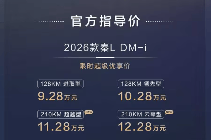 以純電續(xù)航為例,2026款秦L DM-i的入門版本CLTC純電續(xù)航就達(dá)到了128公里,而限時(shí)售價(jià)11.28萬元的210公里超越型更是將這一數(shù)據(jù)提升至210公里。這一續(xù)航水平不僅遠(yuǎn)超上一代車型,甚至接近部分老款高配車型的表現(xiàn)。對(duì)于日常通勤距離在20-30公里的上班族來說,210公里的純電續(xù)航足以滿足一周的零油耗出行需求,大幅降低了用車成本。