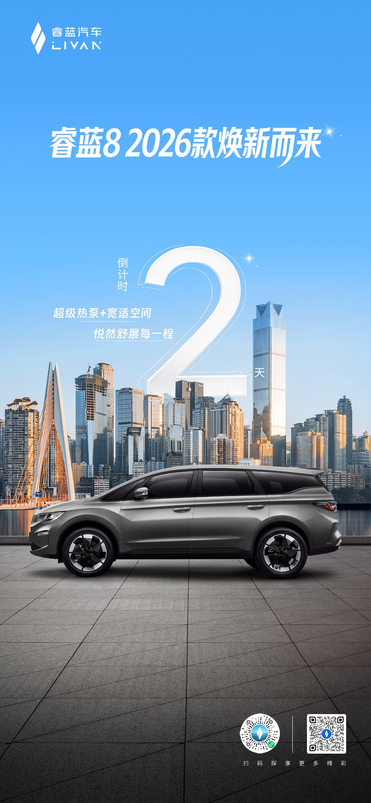 睿藍(lán)8·2026款拒絕妥協(xié),以用戶需求為核心,在空間、續(xù)航、動(dòng)力、舒適等多維度實(shí)現(xiàn)突破升級,重新定義了10萬級純電MPV的價(jià)值標(biāo)桿。目前,新車上市已進(jìn)入倒計(jì)時(shí)階段,更多重磅煥新細(xì)節(jié)和權(quán)益等核心信息將陸續(xù)釋放。1月16日,鎖定官方渠道,第一時(shí)間獲取最新動(dòng)態(tài),與睿藍(lán)8·2026款共赴品質(zhì)純電出行新旅程。