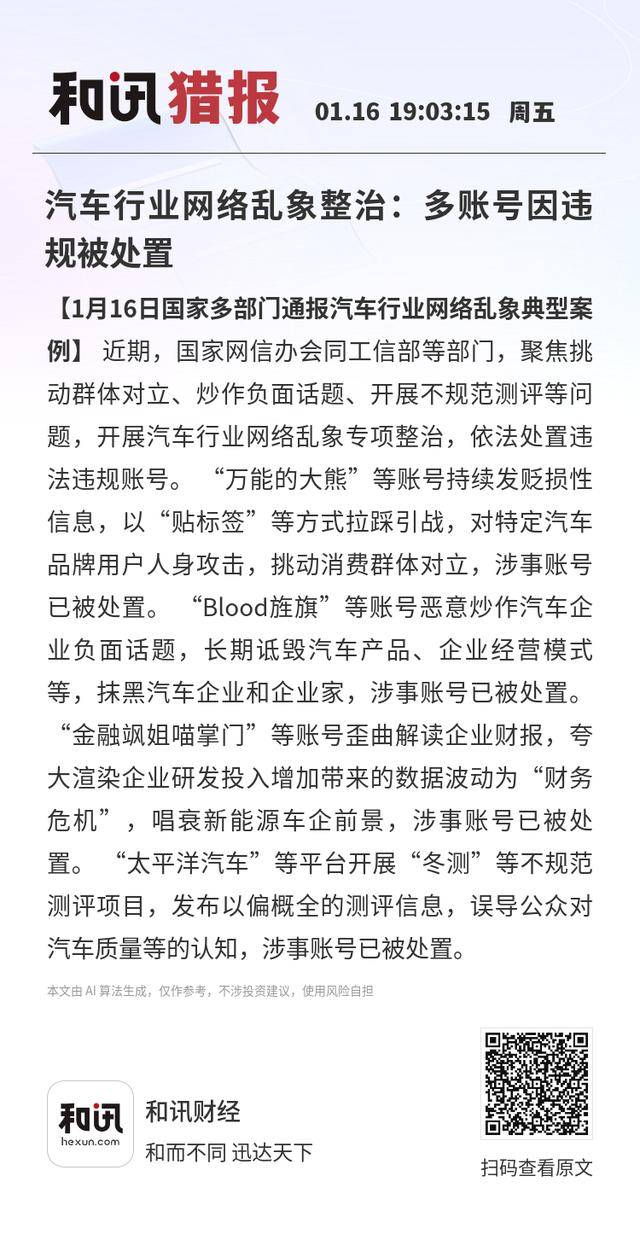 國家網(wǎng)信辦聯(lián)合工信部等多部門,針對汽車行業(yè)網(wǎng)絡(luò)空間存在的突出問題,啟動專項整治行動。此次行動重點打擊挑動群體對立、惡意炒作負(fù)面信息、開展不規(guī)范測評等違規(guī)行為,依法對一批違法違規(guī)賬號及平臺作出處置。