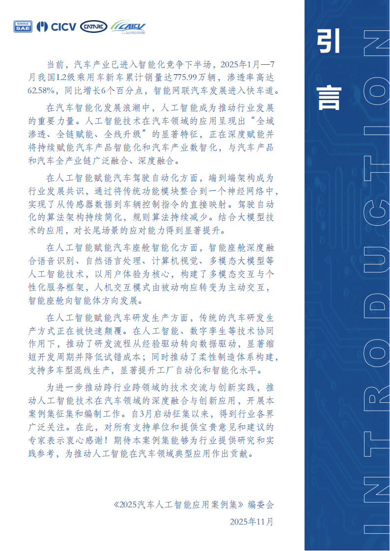 人工智能的深度應用正在重塑汽車產業生態。從技術突破看,行業已從單點功能優化轉向系統能力構建,形成從底層芯片到上層應用的完整技術棧。隨著大模型、數字孿生等技術的持續迭代,汽車產業正加速構建以數據為核心的智能生態,人工智能已成為企業構建差異化競爭力的核心要素。