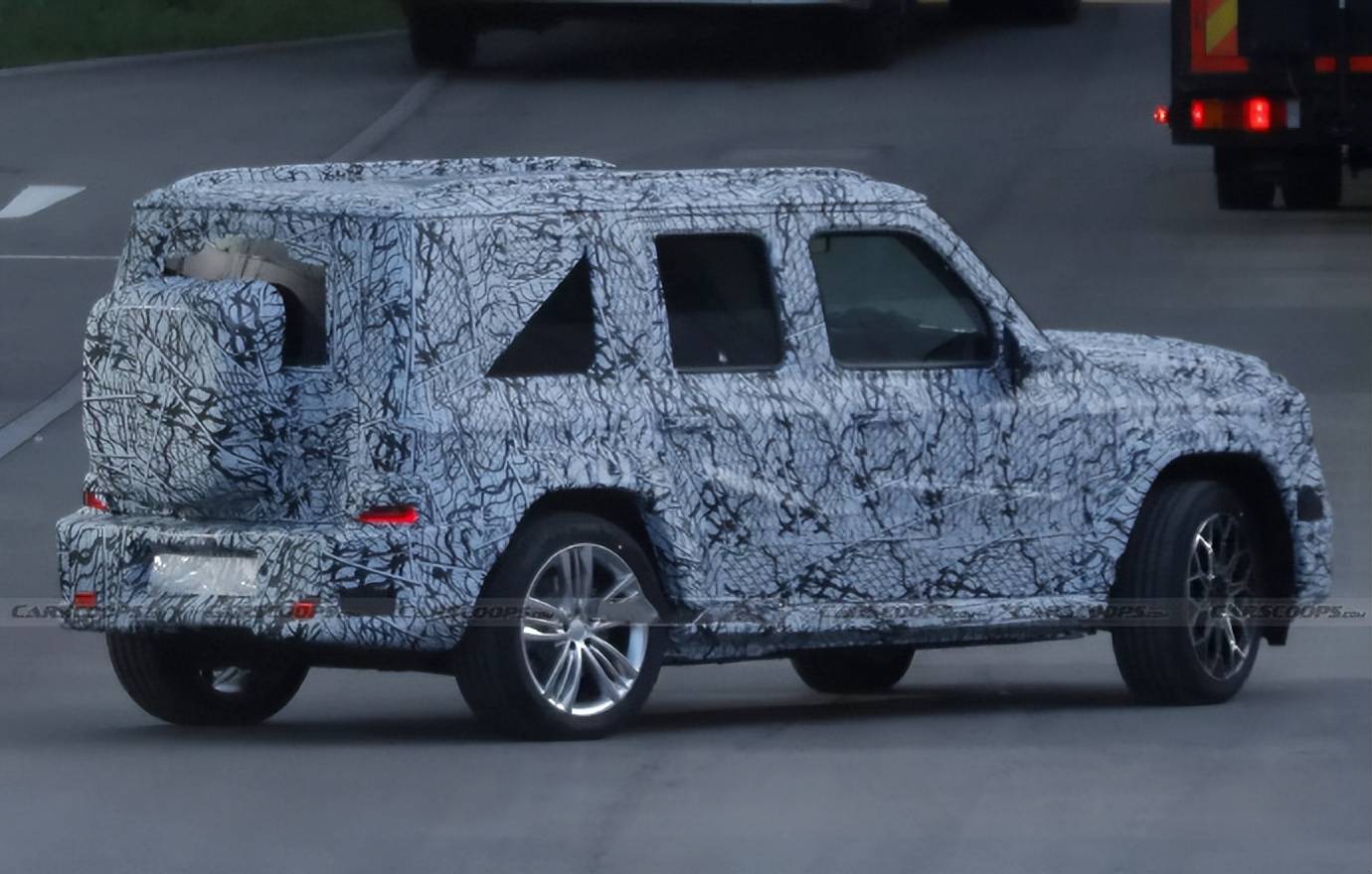 從諜照中不難發現,“小G”的前臉設計獨具匠心,采用了封閉式格柵,這一細節無疑宣告了其純電動力的身份。兩側圓形大燈內嵌半圓LED燈組,既保留了G級家族的經典韻味,又與“大G”形成了鮮明對比,彰顯出獨特的個性魅力。