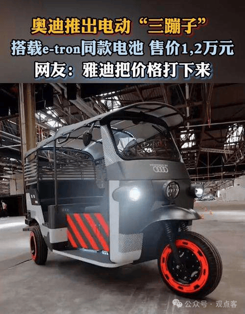 當豪華汽車品牌奧迪的名字與電動三輪車聯系在一起,這場跨界嘗試瞬間引發了車友圈的熱議。這款售價僅一萬余元、自帶遮雨棚且能合法上路的電動三輪車,打破了人們對傳統三輪車的認知,也讓不少人調侃:"奧迪這是要給普通人送福利了?"