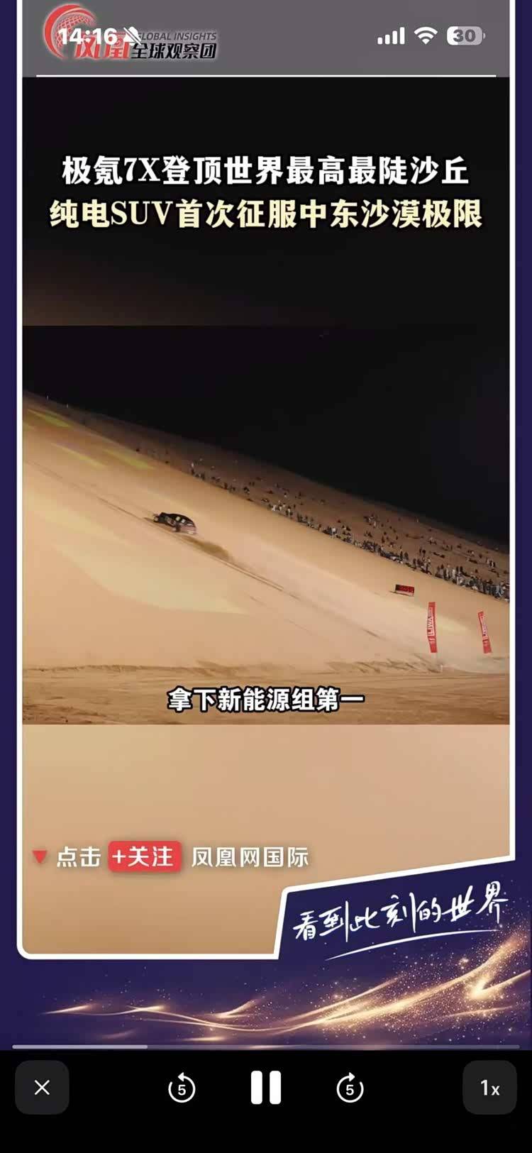 近日,一段國產純電SUV挑戰中東“恐怖之丘”的視頻在海外社交平臺引發熱議。畫面中,一輛未經過深度改裝、僅對外觀進行輕度優化的極氪7X,在沙丘陡坡上如履平地般登頂,而現場多輛傳統硬派越野車卻因動力不足或陷入沙地而折戟,形成鮮明對比。