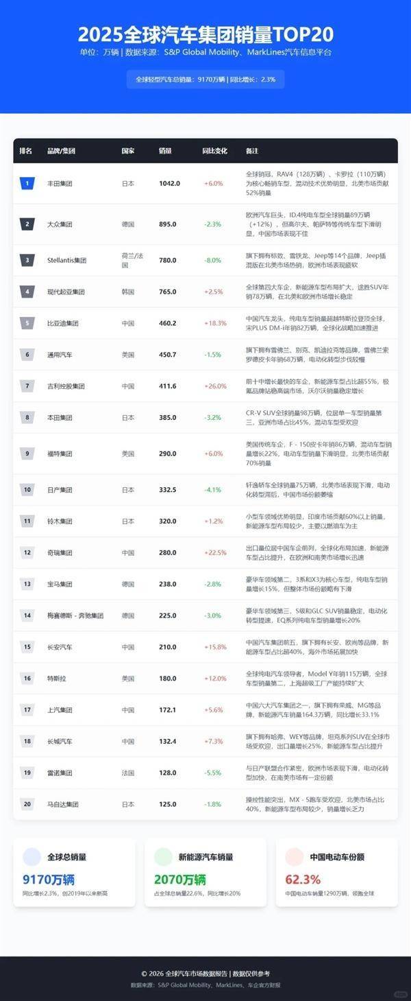 2026年,全球汽車市場的競爭將更加激烈。長安、東風(fēng)等企業(yè)已將年度目標(biāo)設(shè)定為300萬輛量級,并加大新能源和出口業(yè)務(wù)的投入。雖然300萬輛的銷量未必能確保進(jìn)入全球前十,但中國車企的集體發(fā)力正在改變?nèi)蚱嚠a(chǎn)業(yè)的格局。未來,中國車企需在保持規(guī)模優(yōu)勢的同時,聚焦于打造具有全球認(rèn)可度的“世界車”,以實現(xiàn)從“體系勝利”到“定義勝利”的跨越。