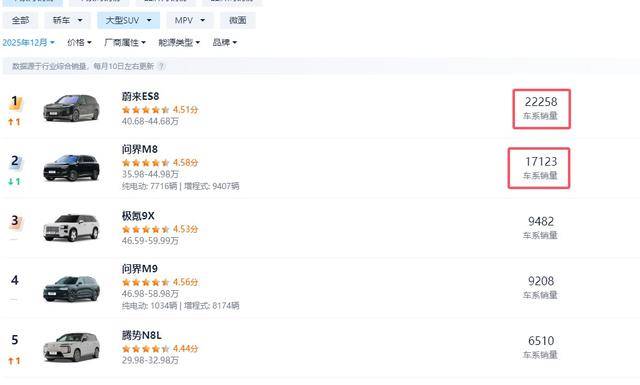 從競爭格局來看,大型純電SUV細分市場仍處于藍海階段。當前主要競品僅包括賽力斯問界M9/M8、極氪9X、比亞迪騰勢及智己LS9等少數車型,尚未形成充分競爭態勢。這種市場環境為ES8提供了充足的成長空間,使其能夠快速占據用戶心智。據行業數據顯示,該細分市場年度容量預計將突破50萬輛,而ES8已占據近半份額。