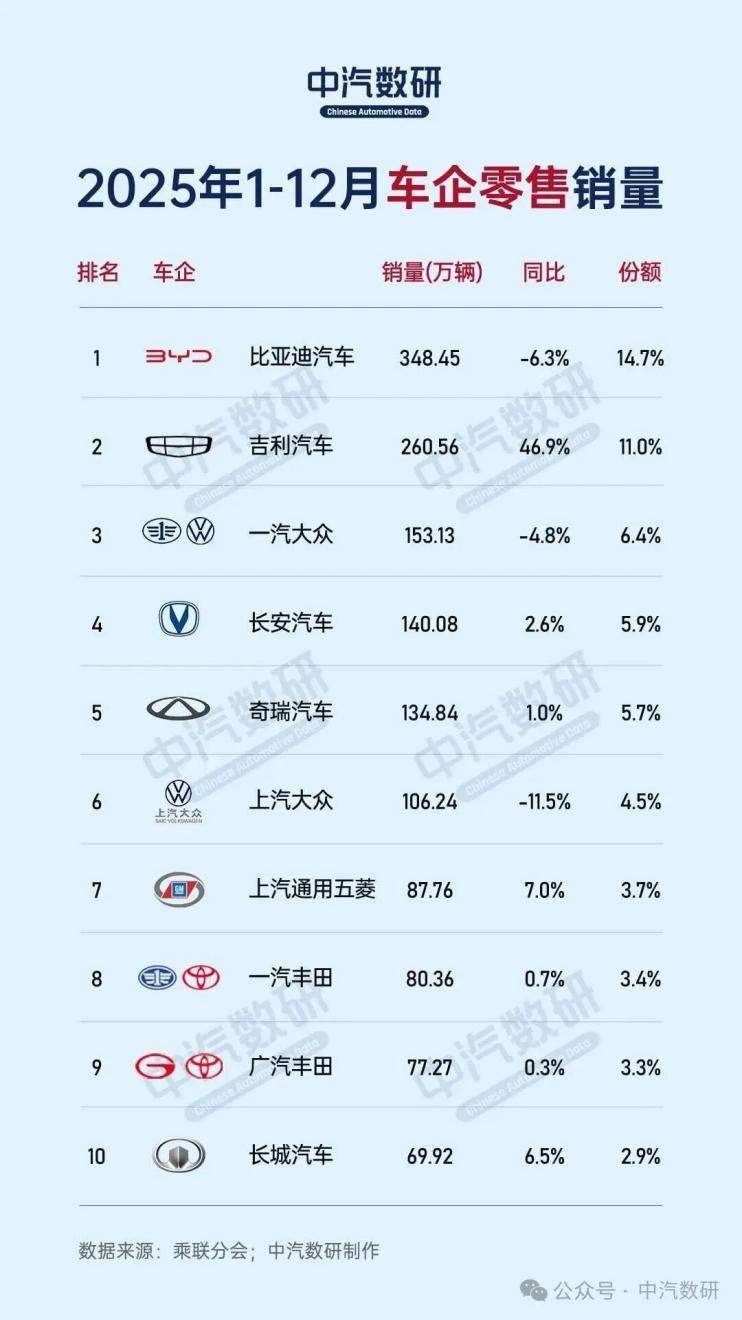 中國汽車市場在2025年迎來新一輪格局重塑,中汽協最新數據顯示,中國品牌乘用車全年銷量占比達69.5%,較上年提升近8個百分點,而合資車企整體市場份額壓縮至30.5%。這一變化背后,是德系、日系品牌普遍承壓與美系、韓系品牌逆勢上揚的鮮明對比,折射出行業電動化轉型的深層博弈。