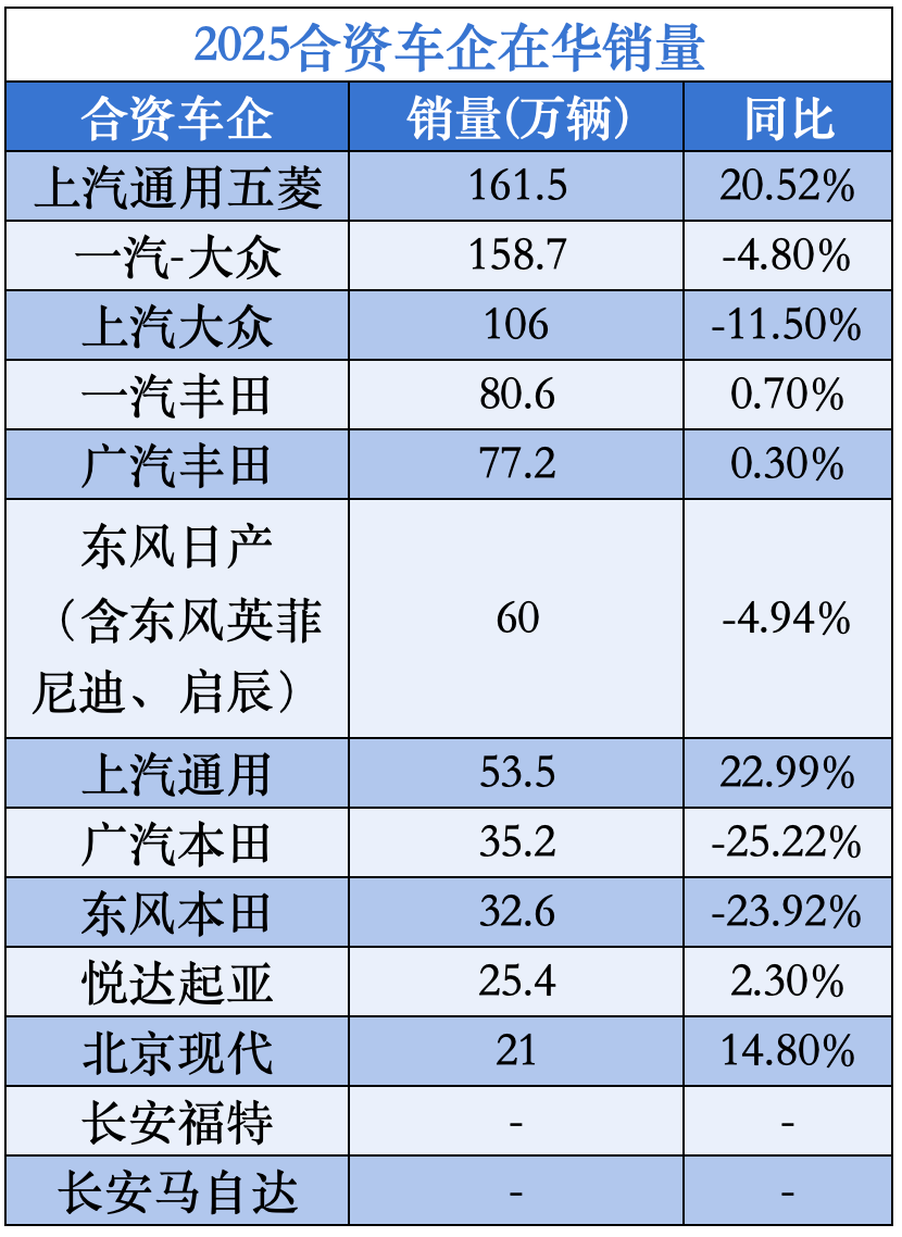 美系品牌展現強勁復蘇勢頭。上汽通用全年銷量達53.5萬輛,同比增長22.9%,其新能源車型滲透率在合資陣營中位居首位;上汽通用五菱更以161.5萬輛的銷量實現20.5%的同比增長。韓系品牌同樣交出亮眼成績單:北京現代銷量突破21萬輛,同比增長14.8%;悅達起亞全年銷量達25.4萬輛,其中出口規模達53.7萬輛,覆蓋東南亞、中東等30余個市場。