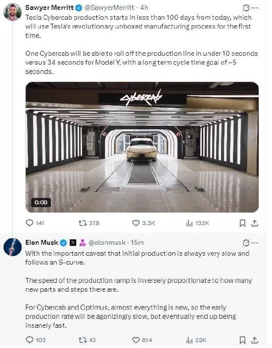 針對這一消息,特斯拉首席執行官馬斯克做出了回應。他指出,在初始生產階段,速度通常會比較緩慢,產能提升會遵循“S”型曲線的發展規律。產能爬坡的速度與新增零部件和工序的數量密切相關,兩者呈反比關系。對于Cybercab和特斯拉人形機器人擎天柱而言,幾乎所有零部件和制造工序都是全新的,這意味著早期生產速度會極為緩慢。不過,馬斯克也強調,隨著生產流程的逐步優化和熟練,最終將實現驚人的生產速度。