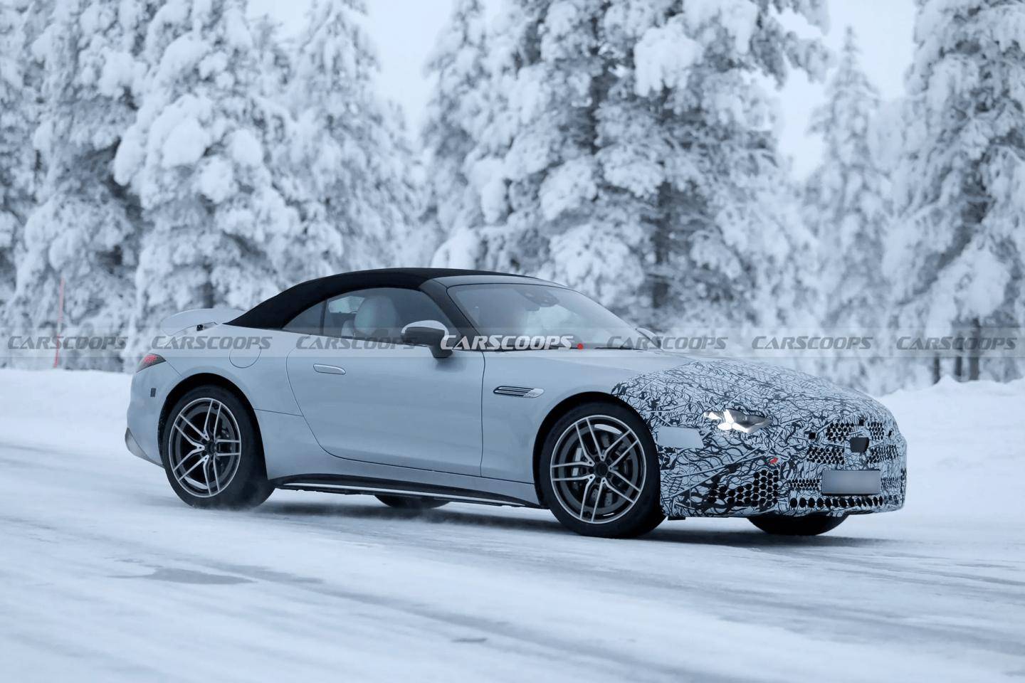 奔馳AMG SL中期改款冬季路測,三叉星大燈配大格柵外觀升級