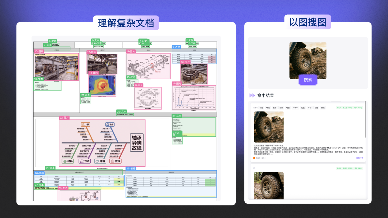 Vision Ultra 多模態知識庫基于多模態視覺 / 布局分析、跨模態知識對齊引擎、動態知識剪枝策略及跨模態混合檢索等核心技術,構建新一代多模態 RAG 能力,實現對復雜文檔、圖像與視頻內容的深度理解與跨模態檢索。從根本上解決傳統 RAG 在圖片、視頻知識處理及文檔布局關系保留方面的不足,為企業級 Agent 提供高可用、高準確度的知識支撐。