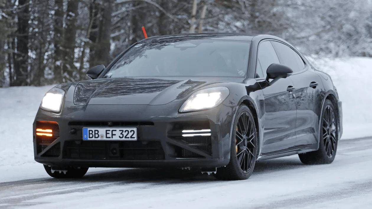汽車媒體autoexpress近日發(fā)布了一組保時(shí)捷Panamera改款原型車的路測(cè)諜照,這款經(jīng)過嚴(yán)密偽裝的測(cè)試車引發(fā)了廣泛關(guān)注。從曝光細(xì)節(jié)來看,該車型極有可能是一款高規(guī)格混合動(dòng)力版本,甚至可能成為現(xiàn)款Turbo S E-Hybrid的升級(jí)之作或全新高性能衍生車型。