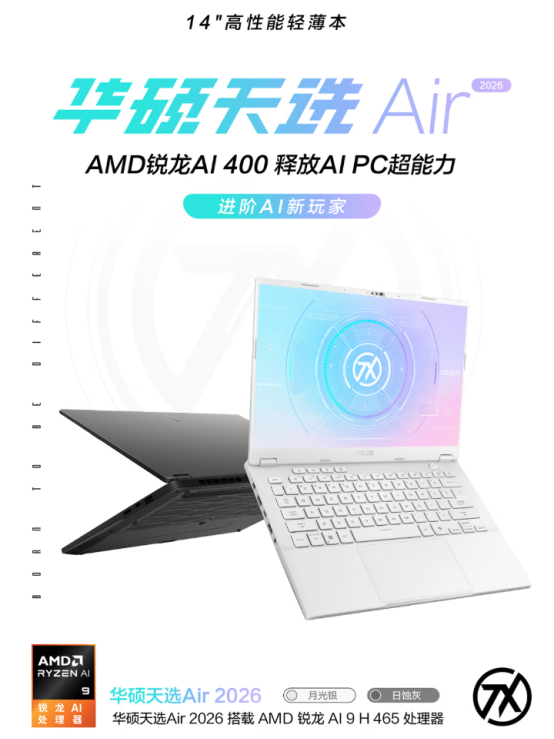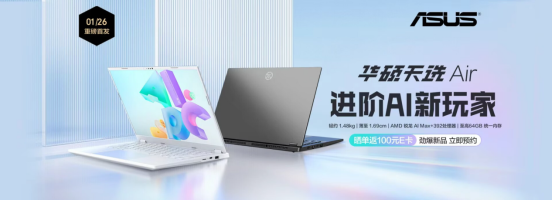 1月26日上午10點,全新14英寸高性能輕薄本華碩天選Air 2026系列全面開售,本次新品包括天選Air 2026銳龍AI Max版與天選Air 2026兩個版本。1月26日上午10點至1月28日24點首發活動期間,天選Air 2026系列新品享1000元首發優惠券與1500元國補優惠,最低到手價8499元,曬單還可返100元E卡,切勿錯過。
