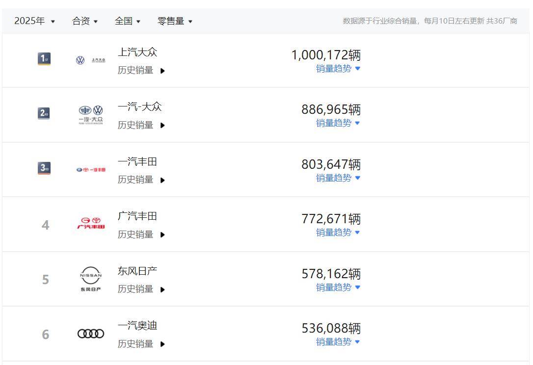 合資品牌年度銷量盤點:大象轉(zhuǎn)身雖緩 百萬基盤仍顯品牌韌性