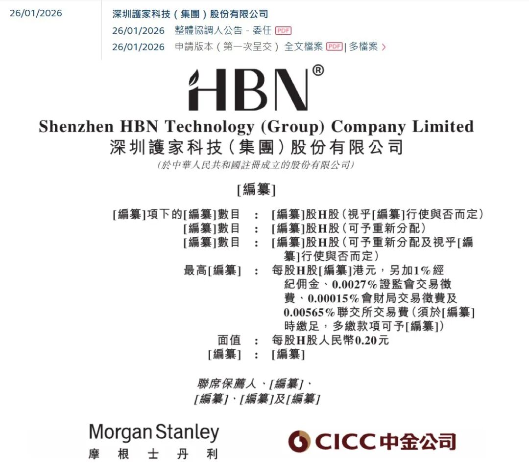 國產(chǎn)護膚品牌HBN的母公司深圳護家科技股份有限公司近日向港交所遞交招股書,計劃在H股主板上市,摩根士丹利與中金證券擔任聯(lián)席保薦人。這一動作標志著這家成立十余年的科技護膚企業(yè)正式叩響資本市場大門。