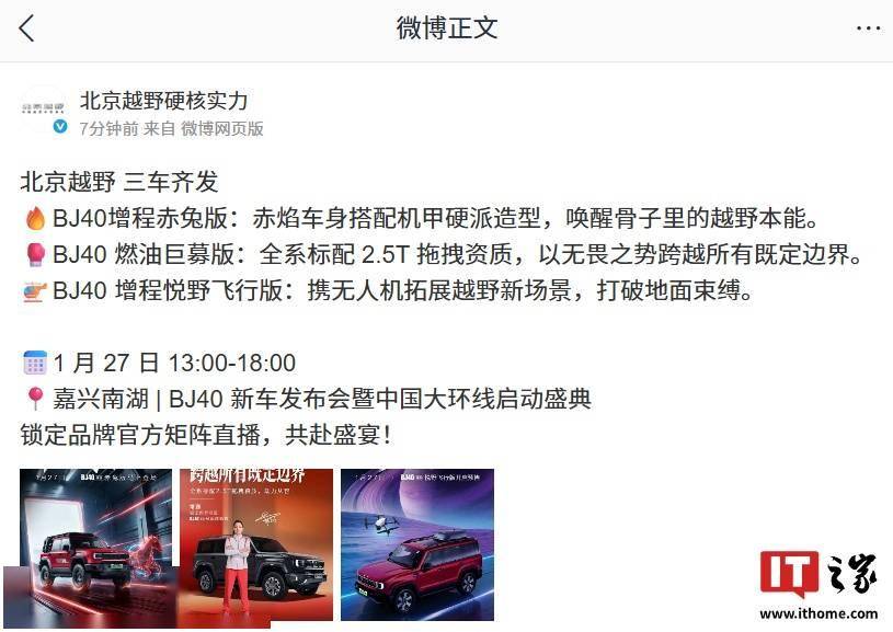 北京越野官方近日宣布,旗下BJ40系列將推出三款全新車型,其中備受矚目的增程悅野飛行版將于次日正式開啟預售。此次同步亮相的還有燃油巨幕版和增程赤兔版,三款車型以差異化定位滿足不同越野愛好者的需求。