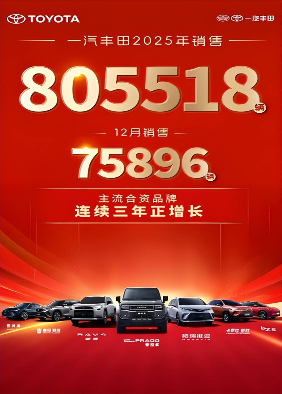 當中國汽車市場在2025年迎來1290款新車扎堆上市的盛況時,豐田卻以一種近乎反常識的姿態在新能源賽道上穩步前行。這家曾被詬病轉型遲緩的日系巨頭,憑借混動技術的深厚積淀與本土化戰略的徹底重構,在合資品牌市占率腰斬至30%的逆境中,交出了令人矚目的成績單:一汽豐田混動車型占比達47%,廣汽豐田更突破50%,TNGA-K平臺高端車型占比超60%。