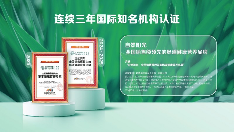 這款自然陽光優萌君益生菌的品質,背后是自然陽光品牌的專業積淀。作為全球領先的天然健康營養品品牌,自然陽光始終堅守“嚴肅營養”的理念,致力于為消費者提供科學、有效的健康解決方案。其連續三年獲得國際權威調研機構歐睿咨詢的認證,這無疑是對自然陽光品牌實力與產品品質的證明。2017年5月,國家商務部給自然陽光頒發了直銷經營許可證,更是進一步印證了其品牌的合規性。