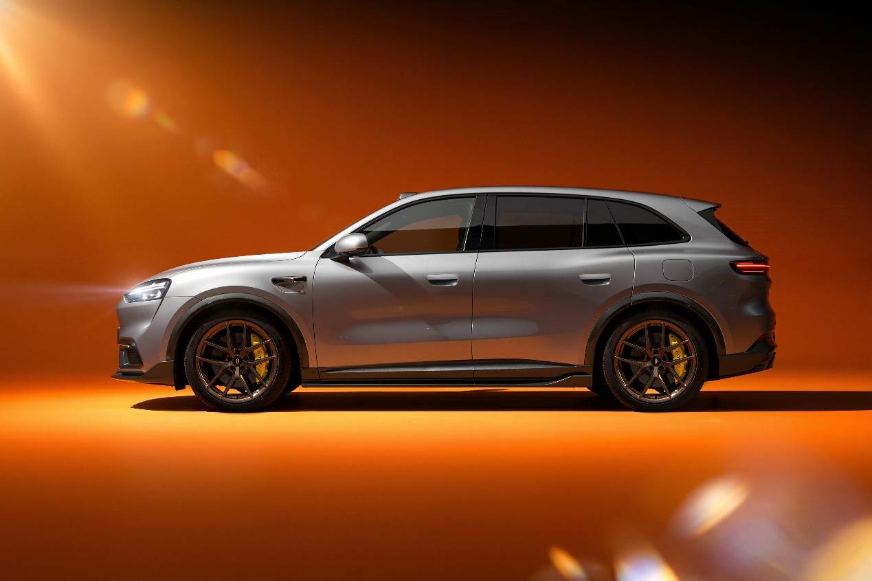 問界M6的側(cè)面設(shè)計(jì)同樣亮點(diǎn)十足。從前臉自然延伸至側(cè)面的黑色包圍元素,使整車的離地間隙顯得更低,營造出一種低趴的運(yùn)動姿態(tài)。官方圖片顯示,問界M6提供了兩種不同樣式的輪胎選擇。一種采用大輪圈和小扁平比的設(shè)計(jì),輪圈為細(xì)輻條樣式,疑似為鍛造輪圈,但尚未得到官方確認(rèn);另一種輪胎規(guī)格的扁平比稍大,采用五輻式設(shè)計(jì),同樣具有不錯的運(yùn)動視覺效果。前后輪內(nèi)部均配備了大尺寸的亮色定鉗,不僅提升了視覺效果,還對車輛的駕控性能有所幫助。不同輪圈形式下,卡鉗的布置位置也有所不同,這讓人猜測問界M6可能會推出專屬的高性能運(yùn)動套件供消費(fèi)者選配。