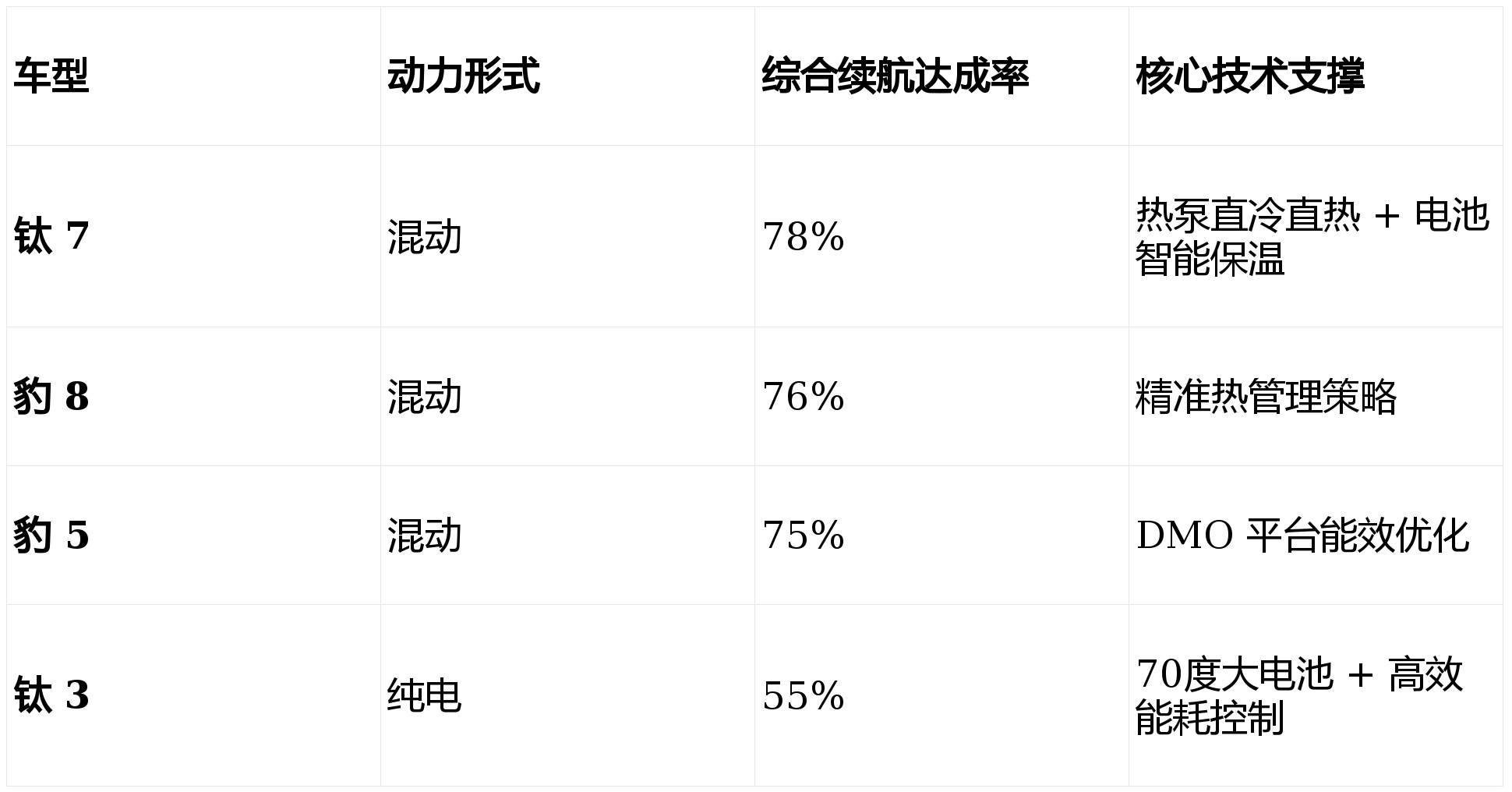 方程豹家族的表現(xiàn)不僅獲得量化數(shù)據(jù)支撐,更得到行業(yè)權(quán)威與用戶的認(rèn)可。朱西產(chǎn)教授全程評估,涵蓋啟動、暖艙、續(xù)航、爬坡、爆胎穩(wěn)定等核心項目。實測顯示,全系指標(biāo)均達標(biāo),其中鈦3續(xù)航保持率、豹5爬坡成功率、鈦7爆胎穩(wěn)定性和豹8暖艙速度等關(guān)鍵指標(biāo)遠超行業(yè)平均水平。真實用戶評價中,媒體編輯稱贊鈦3冬季高速續(xù)航超預(yù)期,冰面變道更穩(wěn);越野玩家點贊豹5冰坡動力線性,底盤扎實;家庭用戶認(rèn)可鈦7提前暖車的便利性與高速冰雪行駛的安全感。