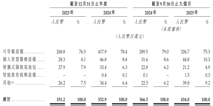 從收入結構來看,報告期內(2023年、2024年及2025年前三季度),可穿戴設備領域貢獻了公司超75%的營收,個人智慧醫療設備占比約10%,而便攜式儲能電池包、智能教育娛樂設備等業務占比較低。例如,在智能教育娛樂領域,公司為全球領先玩具制造商開發了AI玩具專屬電池模型,并已獲得樣品訂單。