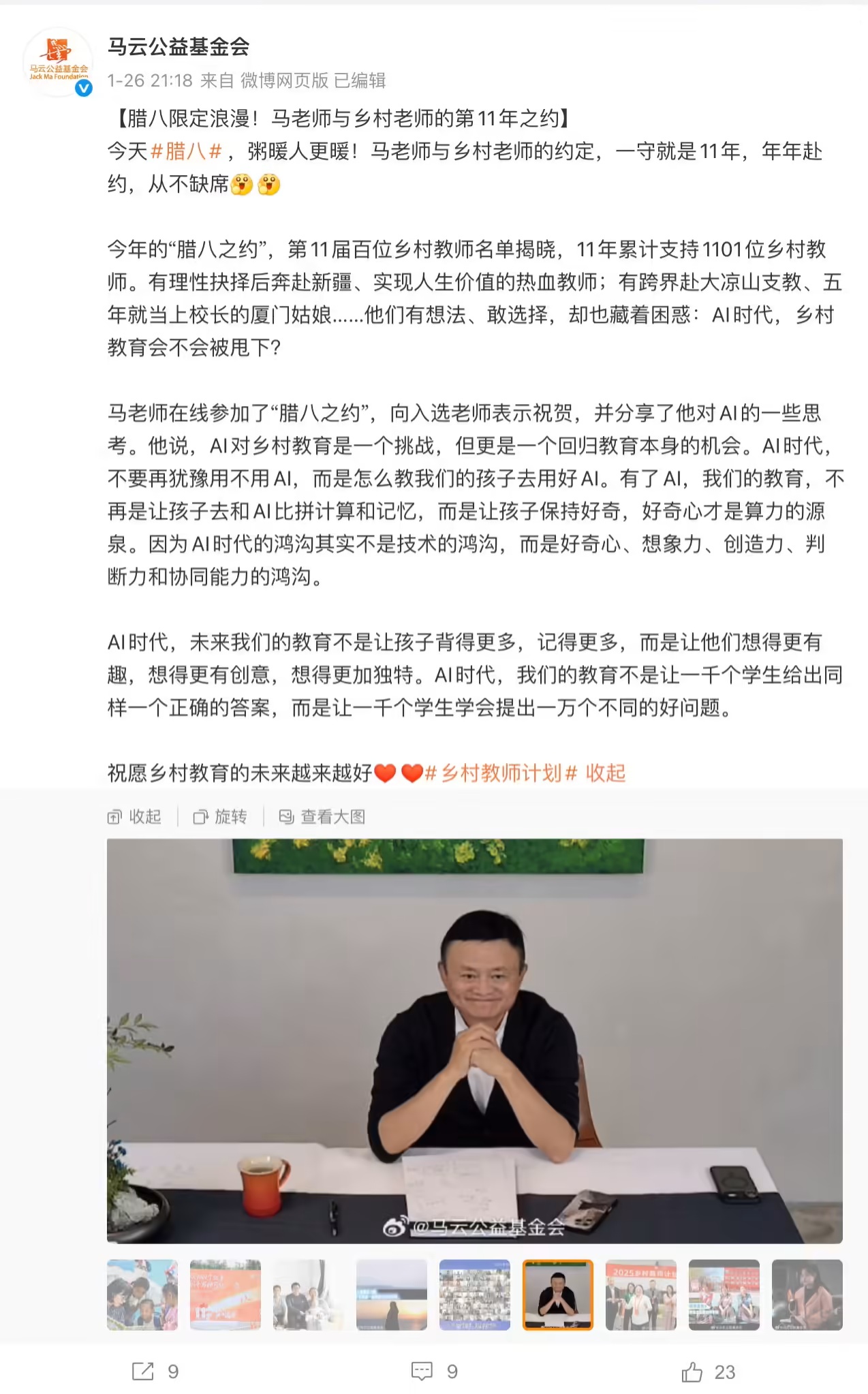 在近日一場以“臘八之約”為主題的活動中,馬云公益基金會公眾號對外披露了馬云關(guān)于人工智能(AI)與教育融合的深度思考。這場活動引發(fā)了社會各界對AI時代教育方向的熱議。