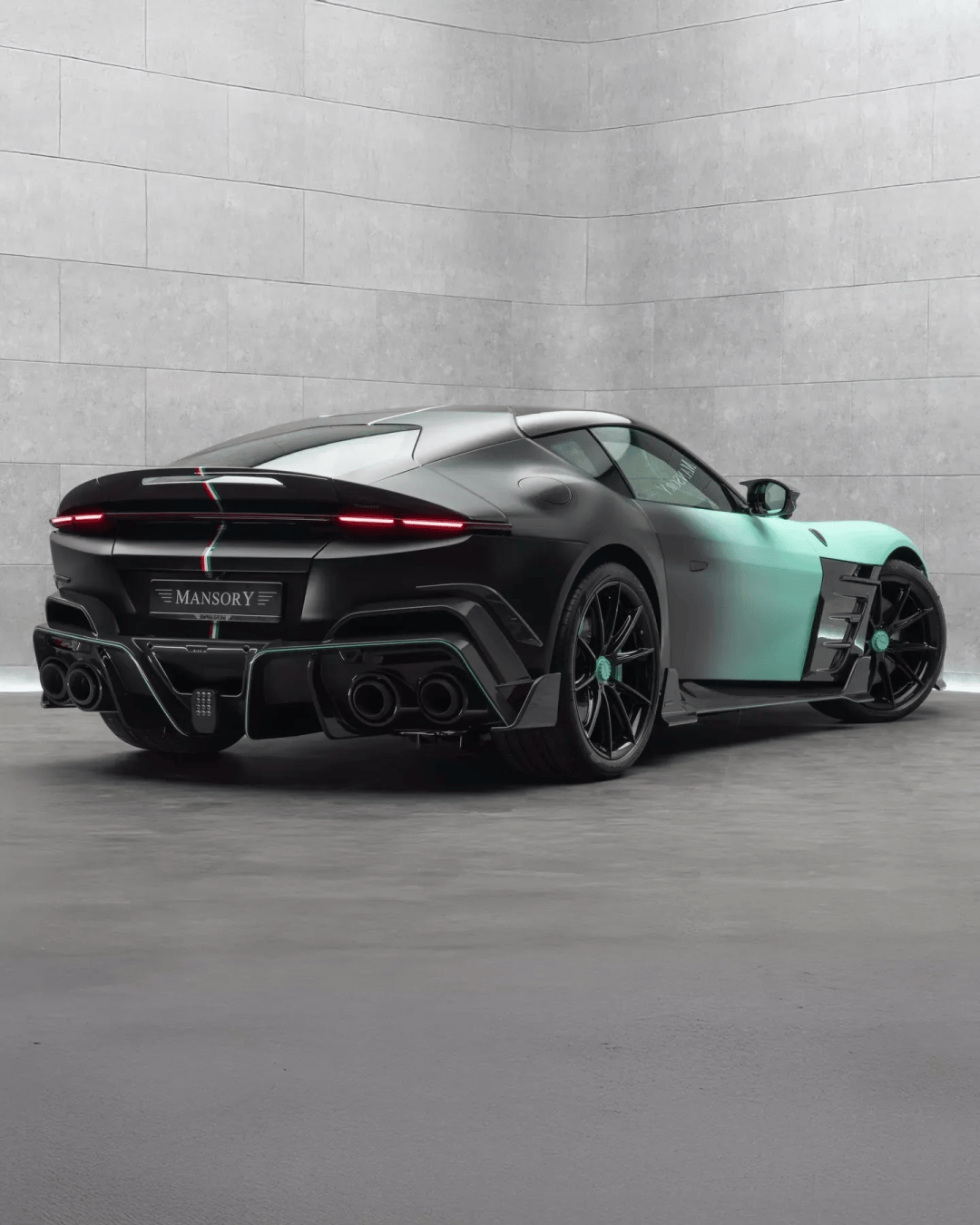 車尾部分,Mansory重新設計了擴散器,對排氣管進行熏黑處理,并調整了高位剎車燈的安裝位置。這些改動雖不顯眼,卻讓車尾看起來更加緊湊與兇狠。內飾方面,黑色翻毛皮材質為主調,座椅、揚聲器格柵、空調出風口等位置點綴蒂芙尼藍飾條,星空頂與車門發光徽標的加入,則讓車內氛圍多了幾分奢華與科技感。
