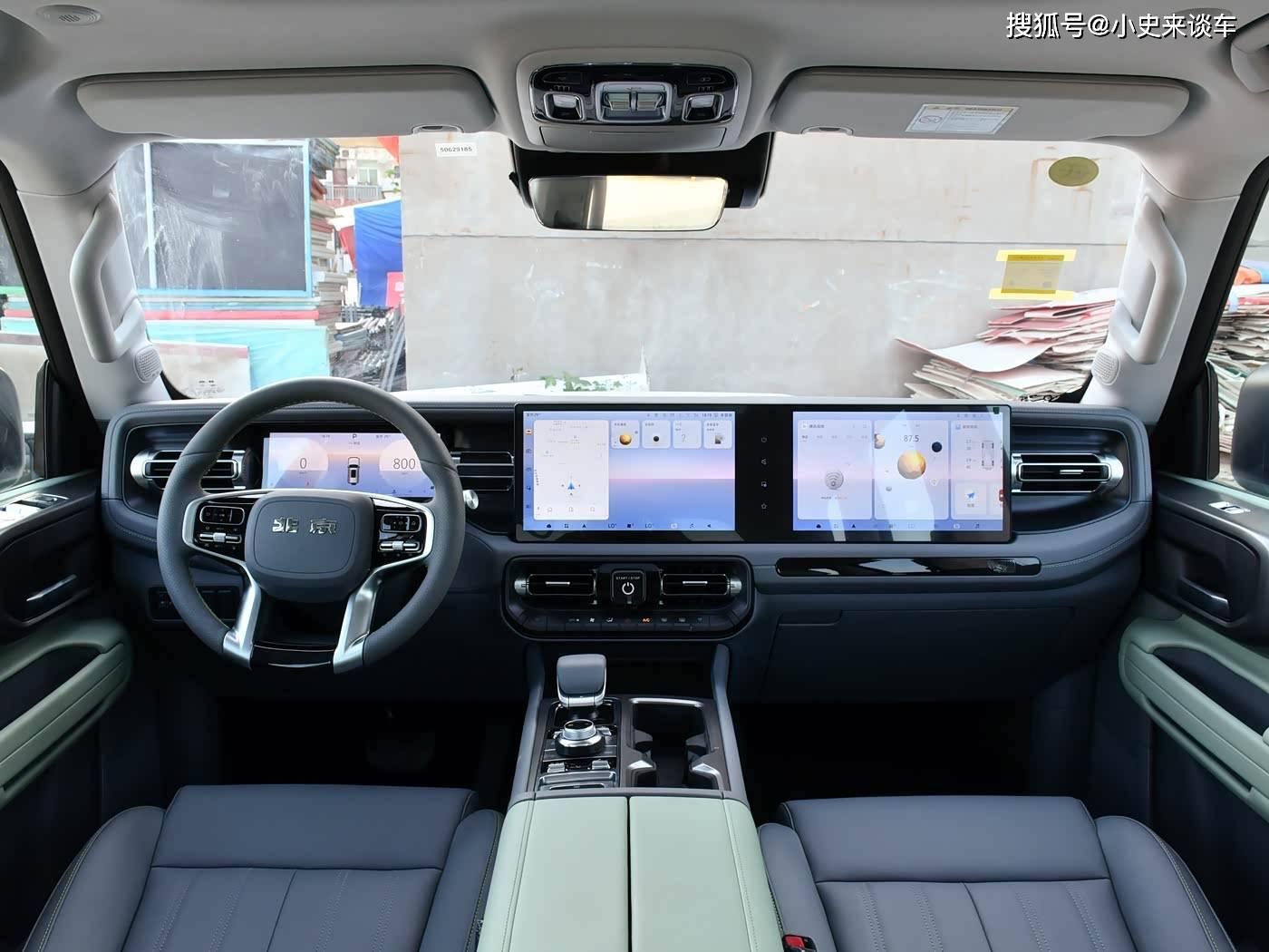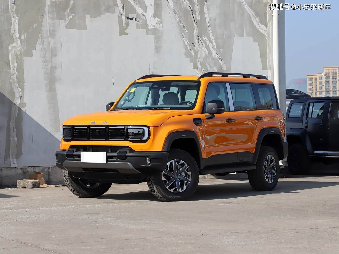車身設計延續硬派越野的經典方盒子造型,平直的車頂線條與垂直車門立柱構成方正輪廓,既保留原始越野氣質,又為車內頭部空間提供最大化保障。黑化處理的行李架與寬體輪眉形成視覺呼應,輪眉處粗獷的線條設計強化了力量感,搭配17英寸輪轂與AT輪胎,越野屬性一目了然。無框車門設計在硬派越野車型中較為罕見,配合側踏板既提升上下車便利性,又增添時尚元素。整車尺寸為4790mm×1940mm×1929mm,軸距達2760mm,在同級車型中具備空間優勢。