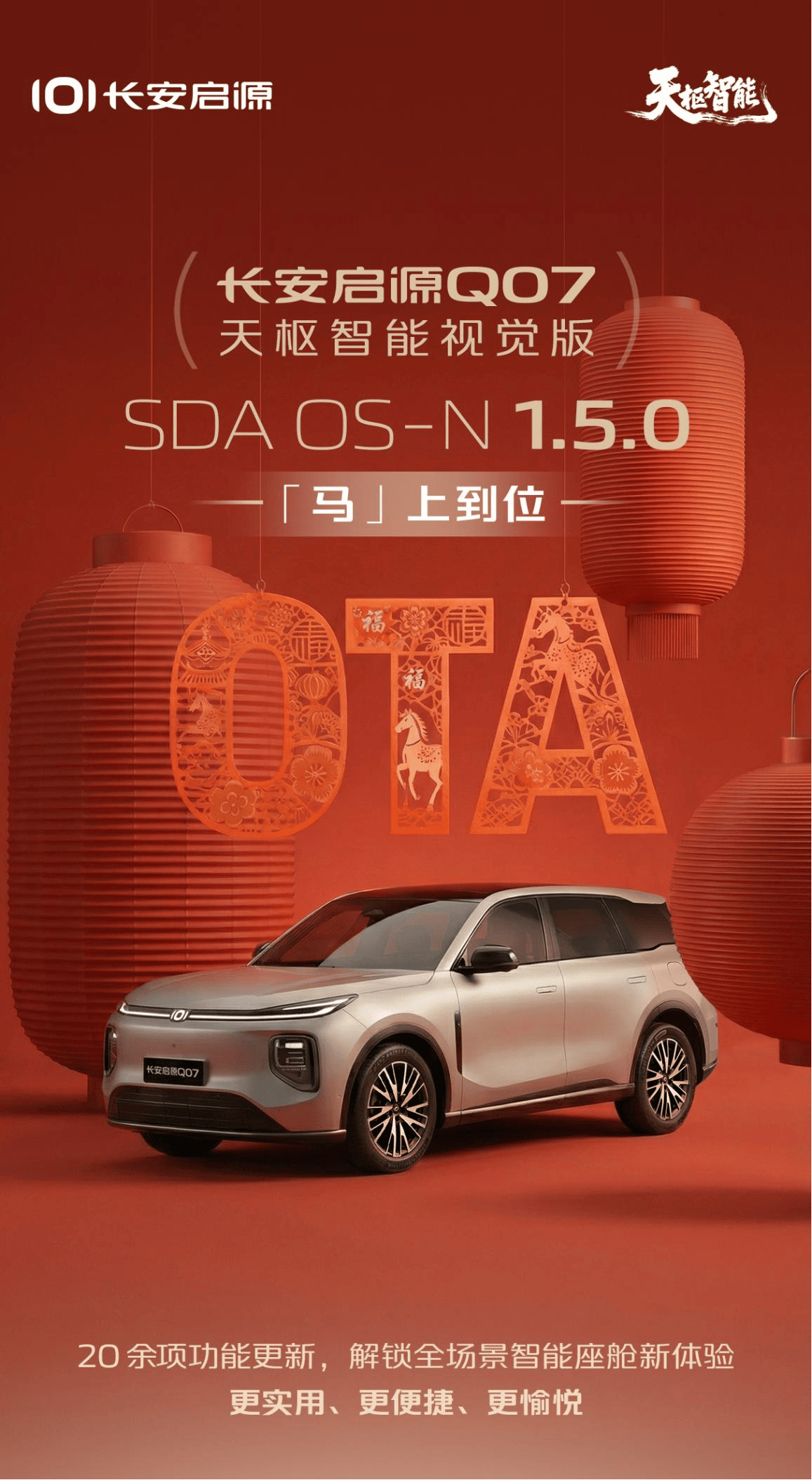 長安啟源Q07天樞智能視覺版近日迎來重大OTA升級,全量推送SDA OS-N 1.5.0版本,為家庭用戶帶來多項突破性功能優化。此次升級不僅強化了車機與手機的互聯生態,更在個性化體驗與舒適性配置上實現全面躍升,進一步鞏固其在15萬級新能源SUV市場的標桿地位。