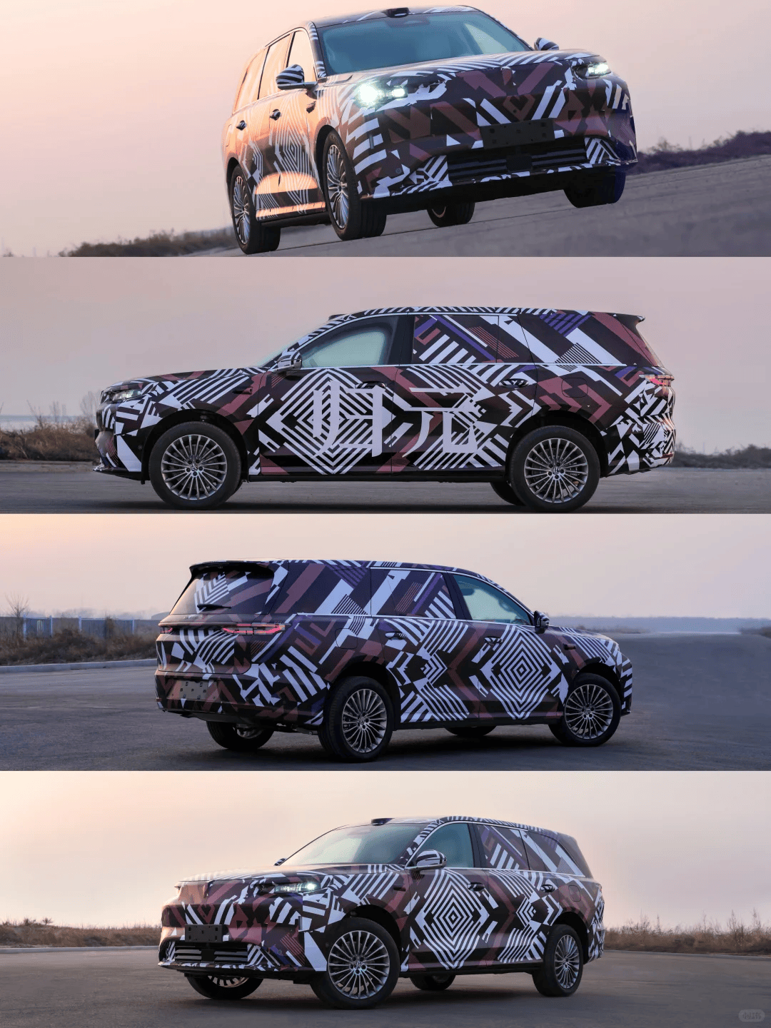 從已曝光的預告圖和實車測試諜照來看,V9X采用了方正硬朗的車身設(shè)計語言,整體造型高大修長,側(cè)面線條流暢有力。車輛配備了大尺寸密輻條輪圈和車頂激光雷達,預計將采用元戎啟行的智能駕駛方案。車長超過5.3米的尺寸參數(shù),使其直接躋身大型SUV行列。前臉設(shè)計采用封閉式格柵,中央鑲嵌魏牌LOGO,底部特別標注"POATING"字樣彰顯產(chǎn)地身份。貫穿式日行燈帶與豎置轉(zhuǎn)向燈的組合,配合厚實的前包圍設(shè)計,營造出強烈的視覺沖擊力。車尾部分延續(xù)了當前大型SUV流行的層次感設(shè)計,貫穿式尾燈融入家族化元素,既保持時尚感又強化了品牌辨識度。
