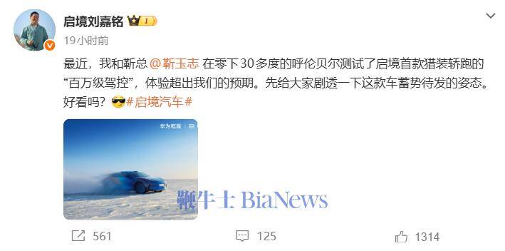 在技術合作層面,啟境汽車與華為的深度聯動成為另一大亮點。日前,啟境汽車CEO劉嘉銘透露,其與華為智能汽車解決方案BU CEO靳玉志共同前往零下30多度的呼倫貝爾,對新車搭載的華為乾崑系統進行極端環境測試。劉嘉銘表示,實際駕控體驗遠超預期,尤其在低溫條件下,車輛的操控穩定性與智能系統響應速度均表現出色,堪稱“百萬級駕控”的越級體驗。