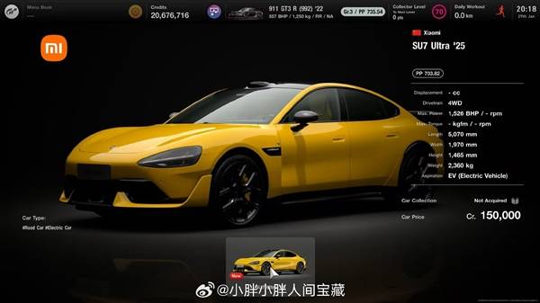作為GT系列27年歷史中首款正式收錄的中國品牌車型,SU7 Ultra的加入具有特殊意義。游戲開發團隊運用高精度掃描技術,完整還原了量產版車型的空氣動力學套件、碳纖維裝飾以及專屬輪轂設計,車身光影效果與現實車輛幾乎難以分辨。小米汽車官方社交媒體特別強調:"從反光涂層到剎車卡鉗細節,每個部件都經過反復調校,確保玩家獲得極致沉浸體驗。"
