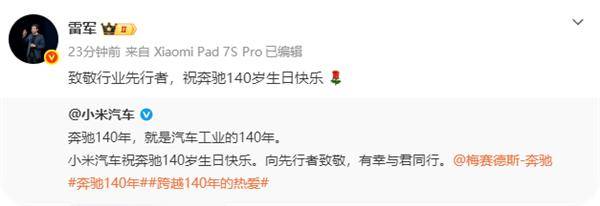 小米集團創始人雷軍隨后轉發相關內容,并補充表示:“從內燃機到智能電動,汽車行業的每一次突破都凝聚著無數創新者的智慧。奔馳用140年證明,真正的領先者永遠在重新定義未來。”這場跨越時空的致敬活動,既展現了行業對技術傳承的尊重,也折射出全球汽車產業在電動化、智能化轉型期的競爭與合作新態勢。