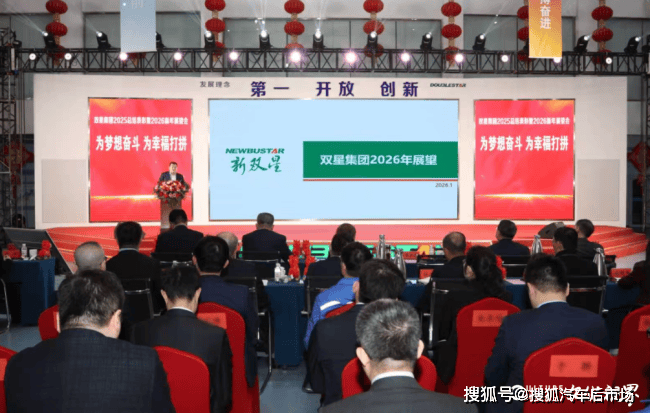 雙星國際會議中心內氣氛熱烈,雙星集團2025總結表彰暨2026新年展望會在此隆重舉行。會議全面回顧了集團2025年發展成果,并對新一年工作作出戰略部署。總裁張軍華在會上詳細匯報了集團年度經營數據,同時介紹了為員工辦實事的具體進展,展現企業發展的溫度與擔當。