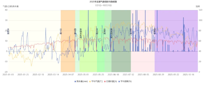 2025年懷來產區氣候總體趨勢呈現冷涼多雨的氣候特點,全年最高溫度為6月22日40.3℃、最低溫度為2月7日-18℃,平均氣溫12.3℃,累計有效積溫2119.1℃,日照時數3005.4h,降水量721.2 mm(創三十年記載以來歷史峰值),平均濕度59.8%。天地無言,卻以氣候為語;人間有心,乃以耕耘為答。