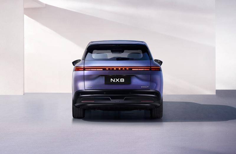 在外觀設計上,NX8的車尾造型尤為引人注目。貫穿式LED尾燈橫跨整個車尾,采用分段式設計,中間鑲嵌日產NISSAN字母標識,點亮后辨識度極高。尾燈支持自定義燈語功能,增加了車輛的趣味性。后包圍設計寬厚飽滿,底部熏黑擴散器與鍍鉻飾條的搭配,既彰顯運動感又不失精致。