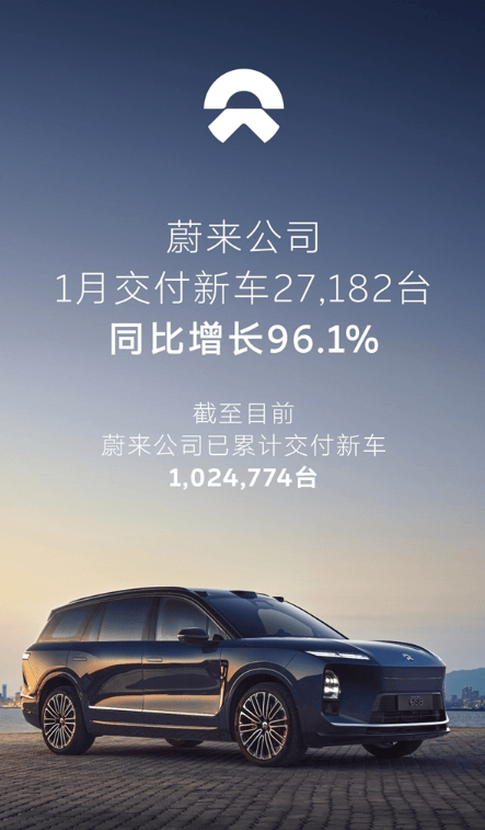 蔚來汽車近日公布了其最新交付數據,1月共交付新車27182臺,較去年同期大幅增長96.1%,為新一年的市場表現奠定了堅實基礎。這一強勁開局不僅彰顯了蔚來在新能源汽車領域的競爭力,也進一步鞏固了其高端市場的地位。