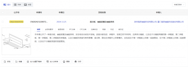 近日,國家知識產權局授權公告顯示,廈門海辰儲能科技股份有限公司及其關聯公司深圳海辰儲能科技有限公司,聯合獲得一項名為“液冷板、儲能裝置及儲能系統”的實用新型專利(授權公告號CN223842959U)。該專利于2024年12月申請,聚焦于電池熱管理這一關鍵技術領域。