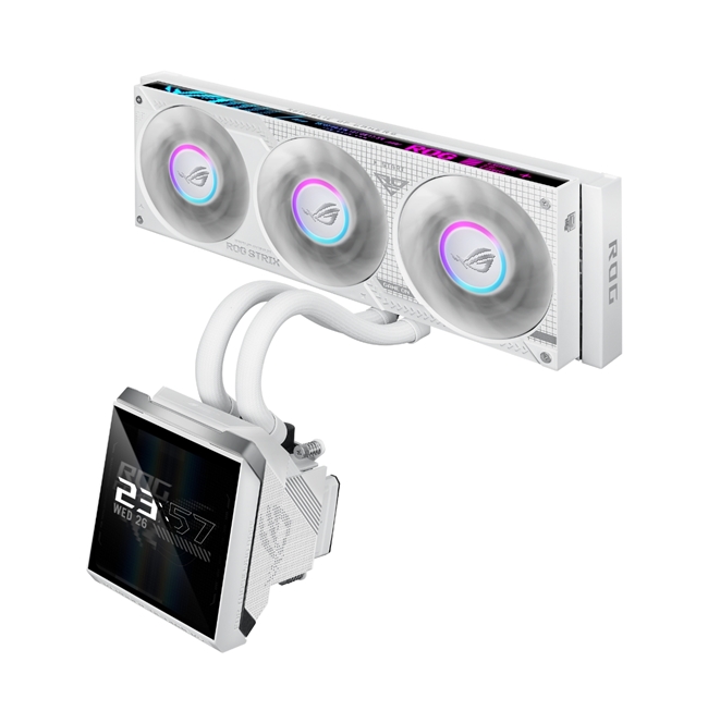 在外觀設計方面,ROG STRIX飛龍4代360一體式水冷散熱器充分考慮了玩家不同的桌搭需求,采用了極簡美觀的設計理念,并提供黑、白雙配色供玩家選擇。這種簡約時尚的設計風格能夠輕松融入不同風格的主機和桌搭環境,無論是追求科技感的現代風格,還是喜歡復古風格的桌面布置,都能與之相得益彰。此外,水冷頭還配備了5.08英寸全彩LCD屏幕,這一屏幕不僅可以實時顯示硬件信息,讓玩家隨時了解電腦的運行狀態,還支持自定義內容。玩家可以根據自己的喜好設置個性化的圖案、文字等,提升整機的可玩性和美觀度。再加上400mm的管長設計,在機箱中布線空間更加靈活,整體觀感也更加干凈時尚,簡直是顏值黨必備單品。