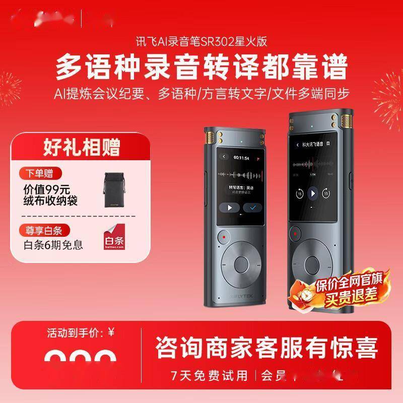 在數字化辦公浪潮席卷職場的當下,如何實現高效信息采集與精準內容轉化,已成為專業人士的核心訴求。科大訊飛最新推出的AI錄音筆SR302星火版,憑借突破性的技術整合與人性化設計,重新定義了智能錄音設備的行業標準。這款集錄音、轉寫、翻譯功能于一體的智能終端,正在為商務、學術、法律等領域的從業者提供全場景解決方案。