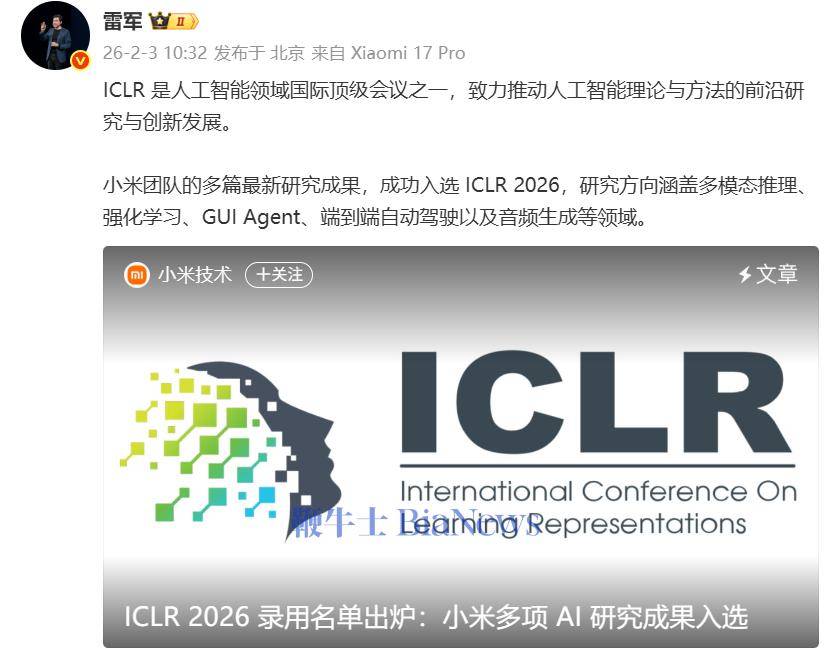 小米汽車團(tuán)隊(duì)發(fā)力AI領(lǐng)域 多項(xiàng)前沿研究成果成功入選ICLR 2026
