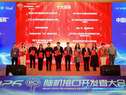 2026年2月3日,全國首屆腦機接口開發者大會在天津圓滿落幕,本次大會由腦機接口產業聯盟、腦機交互與人機共融海河實驗室及天津大學聯合主辦,以“技術開源、生態共建、產業落地”為核心主題,匯聚國內外500余名腦機接口領域專家學者、企業從業者及行業從業者,搭建起高效的技術交流、資源共享與產業協同平臺,同步開展新成果發布、項目路演等特色活動,助力腦機接口技術從實驗室走向商業化落地,賦能產業高質量發展。當晚,大會最受關注的重磅環節——腦機接口華瑙獎2025十大進展評定結果正式揭曉,經過評獎委員會函評、會評等多輪嚴格評審,十大具有行業標桿性的腦機接口領域進展成功出爐,全面覆蓋科技突破、產業轉化、場景應用三大賽道,充分彰顯了我國腦機接口領域的突破性發展成效與強勁創新活力。