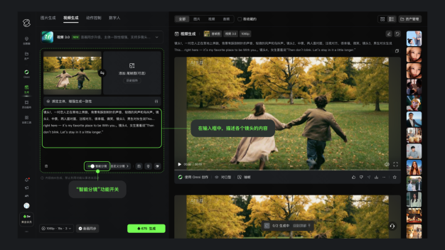 在敘事層面,模型支持最長15秒的連續生成,并引入智能分鏡與自定義鏡頭控制,讓創作者能夠直接組織鏡頭節奏與敘事結構,不再依賴碎片化拼接,從而讓鏡頭具備情緒遞進與畫面張力。