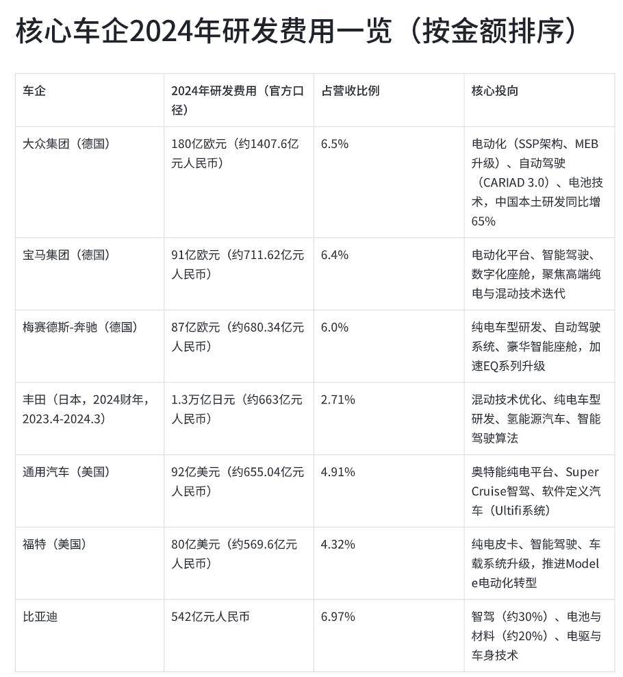 在新能源汽車領域,比亞迪正以驚人的速度改寫著行業格局。憑借持續高強度的研發投入,這家中國車企不僅在技術上實現多項突破,更在全球市場掀起一場“綠色革命”。數據顯示,2024年比亞迪研發投入達542億元,超越特斯拉成為全球新能源車企之首,其研發投入占營收比重高達6.97%,遠超大眾、寶馬等傳統巨頭。