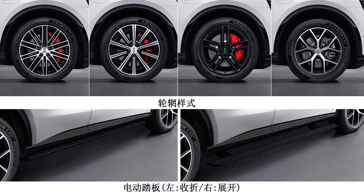 來到車身側(cè)面,問界M6延續(xù)了傳統(tǒng)SUV的設(shè)計(jì)風(fēng)格,半隱藏式門把手、花瓣式輪圈搭配紅色卡鉗,營造出強(qiáng)烈的運(yùn)動氛圍。輪圈提供20英寸與21英寸兩種規(guī)格,對應(yīng)的輪胎尺寸分別為255/50 R20和265/45 R21,并且消費(fèi)者還能選裝電動側(cè)踏板。在尺寸方面,新車長寬高分別為4960/1985/1736mm,軸距達(dá)到2950mm,這樣的數(shù)據(jù)在同級別車型中頗具競爭力。