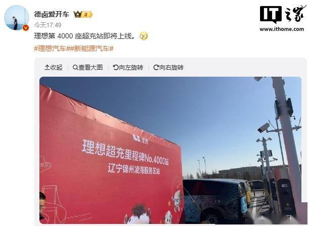 理想汽車在充電基礎設施建設領域持續(xù)發(fā)力,其超充站網絡布局迎來重要進展。最新數(shù)據(jù)顯示,理想超充站累計建成數(shù)量已達3999座,距離突破4000座大關僅剩最后一座站點。據(jù)網絡流傳的現(xiàn)場圖片顯示,第4000座超充站將落戶遼寧錦州凌海服務區(qū),該站點建成后將成為品牌充電網絡的重要里程碑。