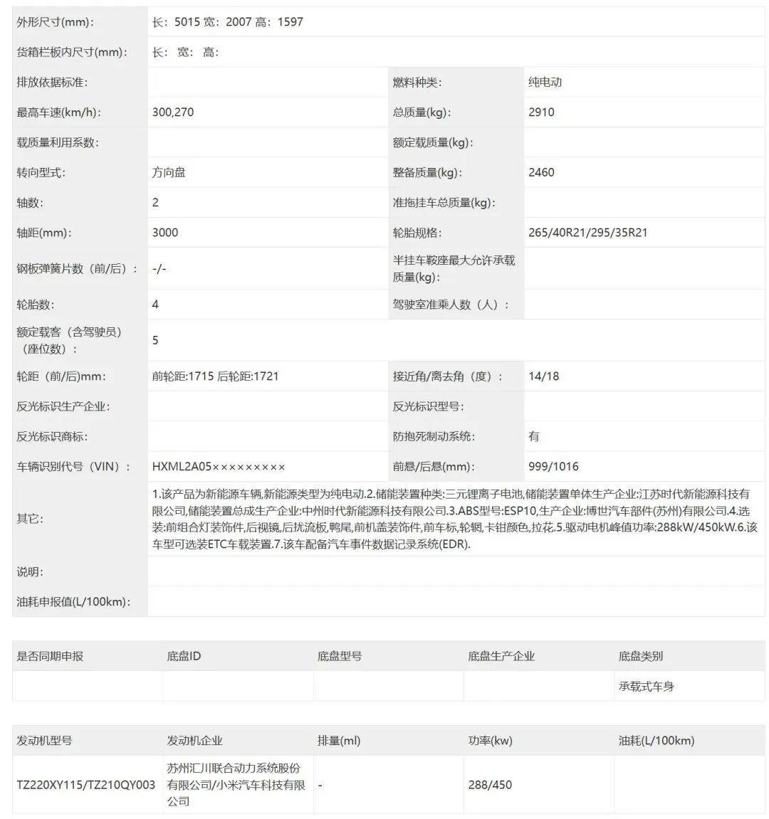 動力系統延續雙電機四驅布局,前電機由匯川提供,最大功率288kW;后電機采用小米自研技術,最大功率提升至450kW。雖然電池容量與續航數據尚未公布,但300km/h的極速表現已彰顯其性能定位。值得關注的是,新車在申報信息中展示了多種造型的輪轂與卡鉗顏色選項,為消費者提供更豐富的個性化選擇空間。